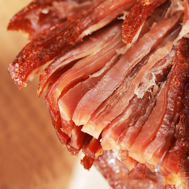 牛肉干分为2种,普通和高品。包装肉的品质都不同